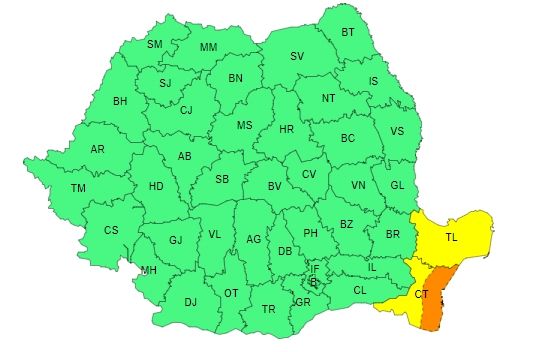 În intervalul menționat, în zona litorală a județului Constanța vor fi averse torențiale și descărcări electrice, iar în intervale scurte de timp sau prin acumulare cantitățile de apă vor fi de 25...40 l/mp și izolat de peste 50...60 l/mp.