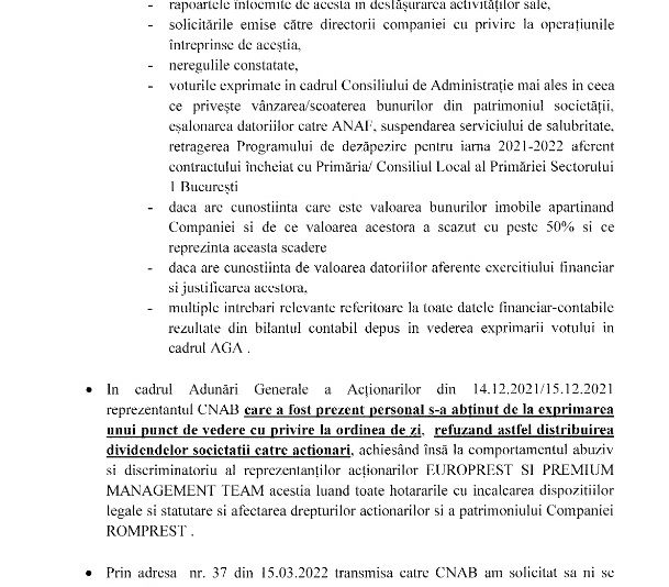 Ei reprezentau statul român, cele 10% în compania Romprest. Cu acordul dlul Dorbanțu au votat ca compania să nu încaseze dividende de la Romprest. Am prezentat aceste lucruri. În urma emisiunilor, DNA a solicitat hârtii, iar dl Dorobanțu a făcut acest denunț în iulie, la 4 zile după ce noi am făcut emisunea. În momentul în care și-au dat seama că sunt strânși cu ușa, au făcut acest denunț.