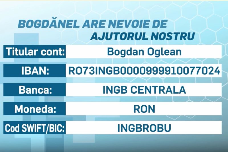 "Majoritatea bugetului este alocat tratamentului, în primul rând, fizioterapiei pulmonare de care Bogdănel are nevoie pentru că plămânul lui trebuie să lucreze, să fie întotdeauna forțat, să rămână sănătos. Alimentele - are nevoie de alimente... o dietă hipercalorică bogată în grăsimi, dar grăsimi bune. Dacă nu sunt grăsimile bune, îi afectează ficatul și celelalte organe. Am reușit să cumpărăm aparatul cel mai ieftin din punct de vedere al prețului, dar care își face treaba pentru el acum. Ne dorim din tot sufletul să cumpărăm aparatul care să-i înjumătățească timpul de facere al aerosolului. Costă undeva la 6000-6500 de lei, cu toate accesoriile", mai spune Alexandra.
