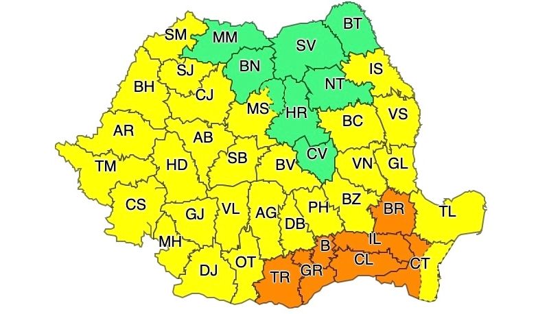 Valul de căldură va persista în cea mai mare parte a țării, iar în zonele de câmpie și local în cele de deal și podiș va fi caniculă. Disconfortul termic va fi ridicat, iar indicele temperatură-umezeală (ITU) va depăși pragul critic de 80 de unități. Temperaturile maxime se vor situa în general între 33 și 37 de grade, iar minimele se vor încadra între 17 și 24 de grade.