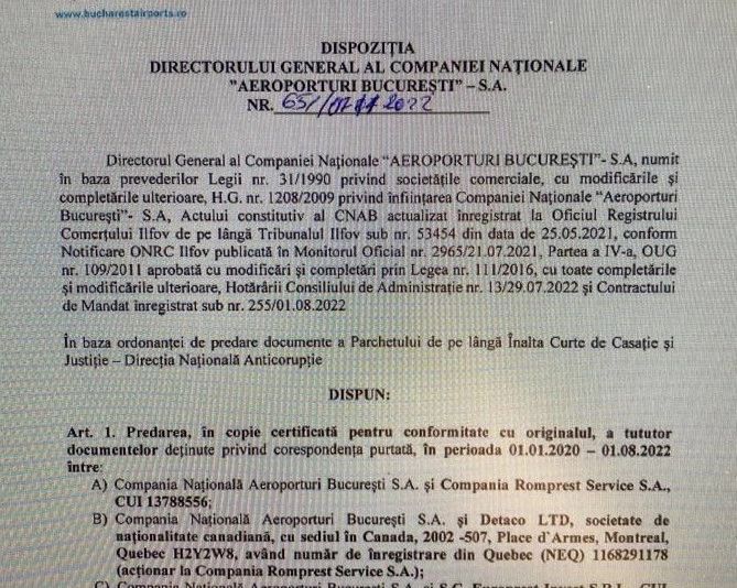 Procurorii DNA au intrat pe fir și fac ordine în Compania Națională de Aeroporturi București (CNAB). Mai exact, procurorii antimafia cer acte și documente care să certifice dacă cei de la CNAB vor să vândă 10% din acțiunile companiei.