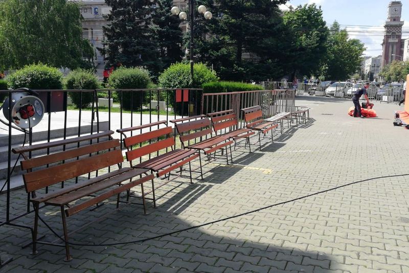 FOTO Alegeri europarlamentare 2019. Corturi și garduri metalice, la Palatul Administrativ din Ploiești
