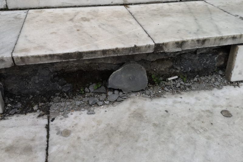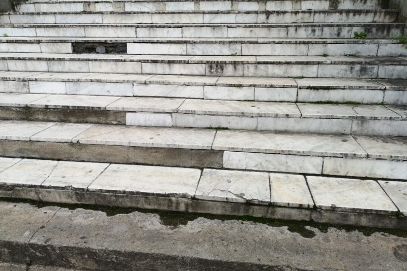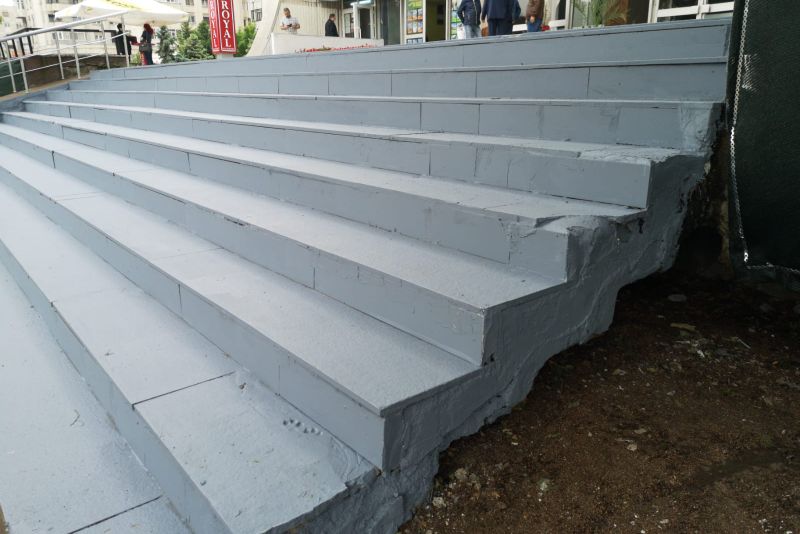 Treptele de marmură din fața Casei de Cultură a Sindicatelor din Ploiești, unde este așteptat să-și lanseze cartea președintele Klaus Iohannis, au fost vopsite