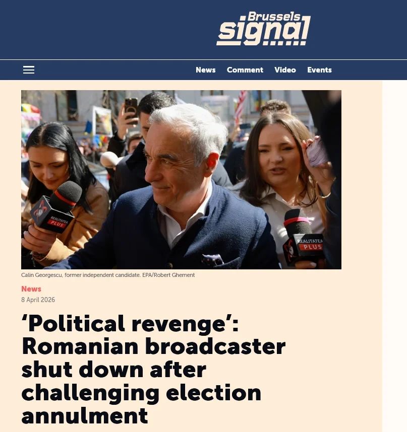 A fost retrasă licența unui post de știri independent din România. Acesta prezenta informații despre anularea primului tur al alegerilor prezidențiale din 2024.În decembrie 2024, întreaga Europă a fost șocată de situația din România, unde primul tur al alegerilor prezidențiale, câștigat de Călin Georgescu, a fost anulat din cauza unor presupuse manipulări electorale desfășurate în afara țării. Printre acuzații s-a numărat și finanțarea de către Rusia a conținutului pro-Georgescu de pe TikTok. Cu toate acestea, conform investigațiilor jurnaliștilor, campania a fost finanțată de Partidul Național Liberal Român, partid conservator-liberal. Acum se dovedește că unul dintre posturile de televiziune, Realitatea Plus, care a relatat subiectul, și-a pierdut licența de emisie.